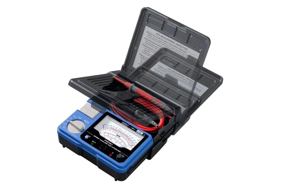 Hioki 3490 เป็นเครื่องทดสอบฉนวนแบบอนาล็อกที่มีฟังก์ชันครบครันสำหรับการใช้งานภาคสนาม รองรับแรงดันทดสอบ 3 ช่วง (250 V, 500 V และ 1000 V) สามารถทดสอบความต้านทานฉนวนได้สูงสุดถึง 4000 MΩ พร้อมฟังก์ชันตรวจสอบความต่อเนื่องที่กระแส 200 mA ตรวจสอบวงจรมีไฟ และตรวจสอบสถานะแบตเตอรี่ในตัว มาตรฐานความปลอดภัย CAT III 600 V