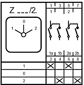 Switch Usage: Change-over Switch with 0-position (switching angle 60°)