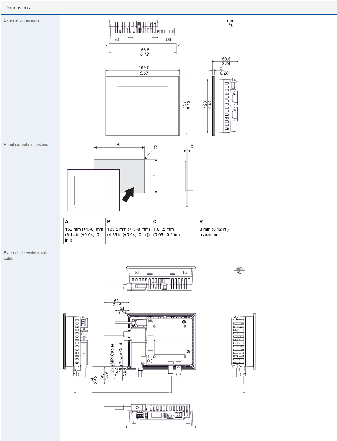 5.7 touch panel display, QVGA, Analog-Single, 2xCOM, ETH, USB A & mini-B, SD, 24VDC, Isolated