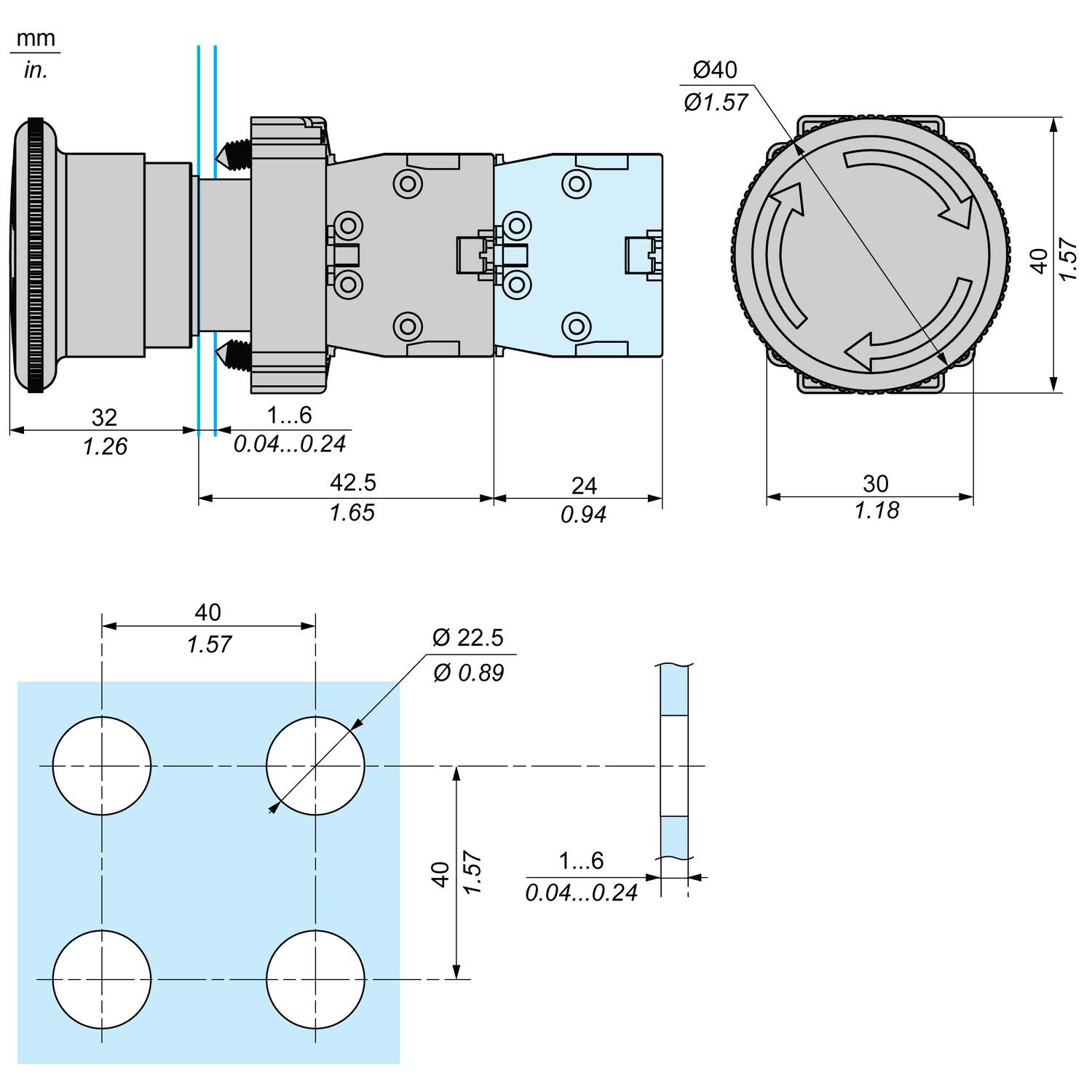 แบบกด หมุนเด้งกลับ ผลิตภัณฑ์ทำจาก โลหะขนาด Ø22 มม