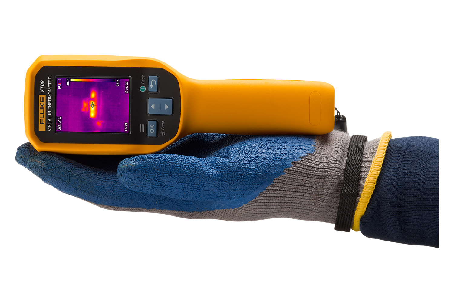 VT08 แสดงภาพอินฟราเรดพร้อมภาพจริง (visible image) และมีโหมด PIP (Picture-in-Picture) ซึ่งช่วยให้ระบุตำแหน่งของจุดร้อน (hot spot) ได้แม่นยำขึ้น โดยสามารถสลับพาเล็ตสี (Ironbow, Blue-Red, High-Contrast, Amber, Hot Metal, Grayscale) เพื่อเน้นความต่างของอุณหภูมิตามสภาพหน้างาน