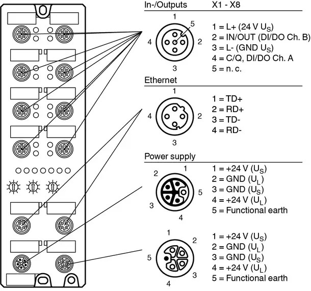 IO-Link Master เชื่อมต่อ PROFINET IO , EtherNet/IP , EtherCAT® , CC-Link IE Field Basic , MODBUS TCP รองรับอุปกรณ์ได้ 8 IO-Link หรือ 16 Input/Output แบบ Digital IP65 / IP67 / IP69K Power 20-30VDC Max. load 16 A ต่อโมดูล