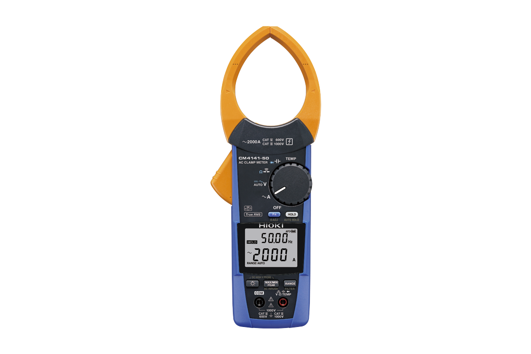 CM4141-50 คือแคลมป์มิเตอร์ AC True RMS สำหรับงานอุตสาหกรรม วัดกระแสได้สูงสุด 2000 A พร้อมปากแคลมป์ดีไซน์บางพิเศษ ช่วยสอดแคลมป์ในช่องแคบระหว่างสายได้ง่ายโดยไม่ทำให้สายเสียหาย รองรับการวัด AC A, AC/DC V, DC+AC V, Resistance, Frequency และฟังก์ชันเสริมเพื่อเพิ่มความคล่องตัวในภาคสนาม
