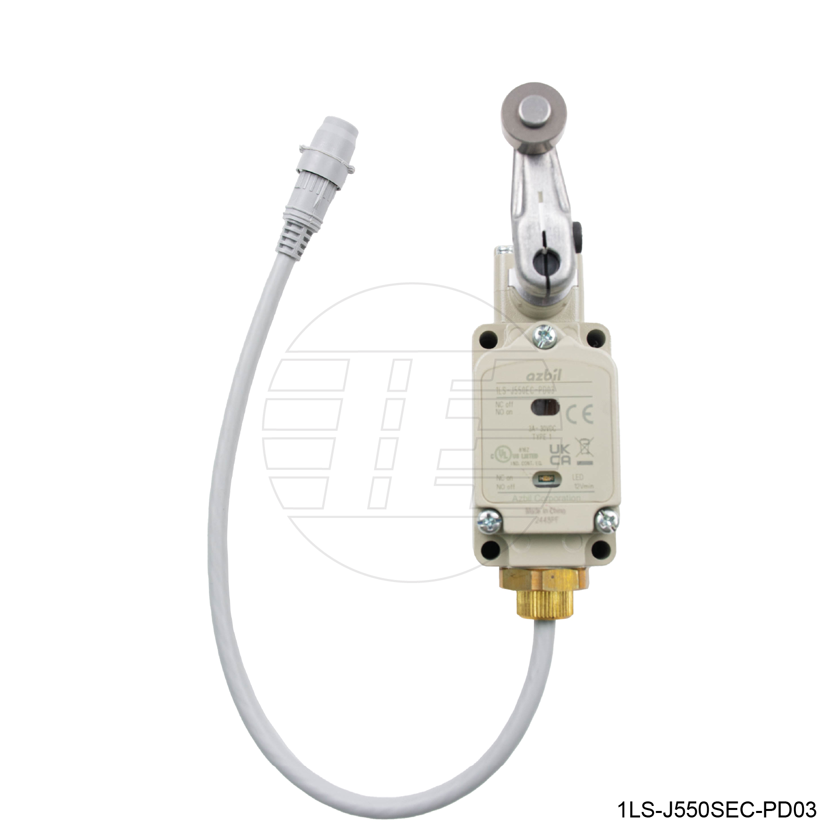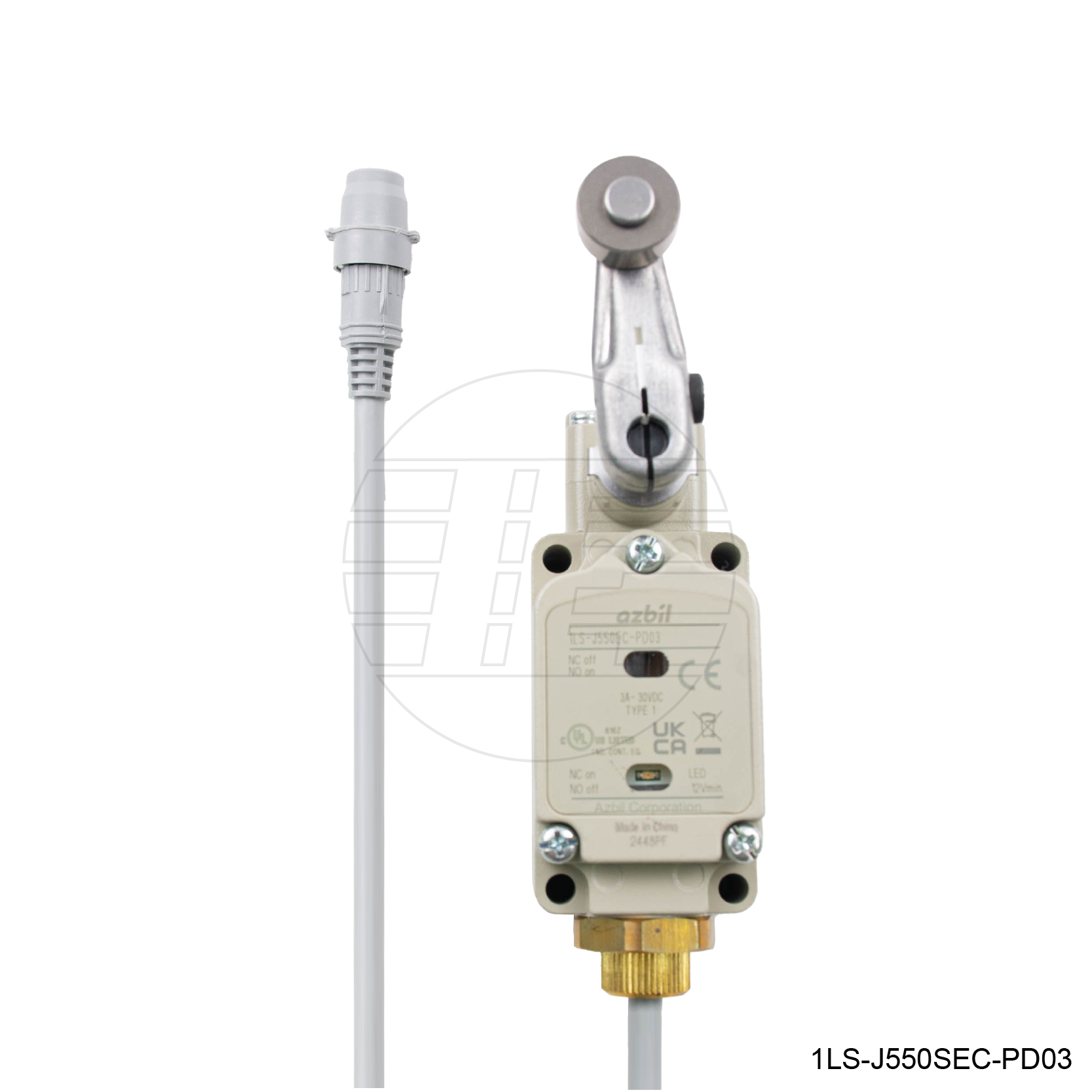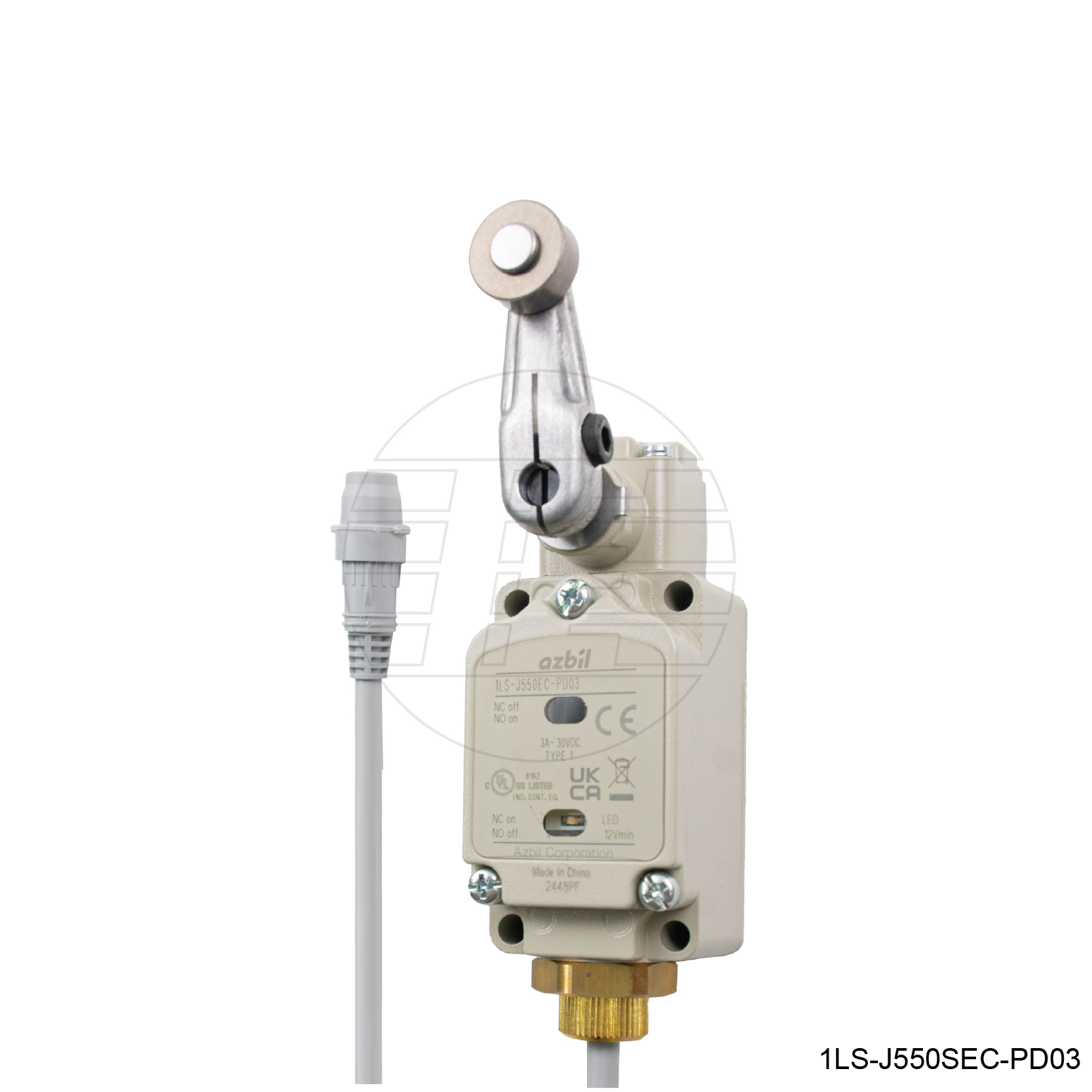 Roller lever, P.T. = 10°, T.T. = 75°, Max. O.F. = 8.9N, 1NO/1NC, With LED lamp + M12 connector cable L= 0.3m