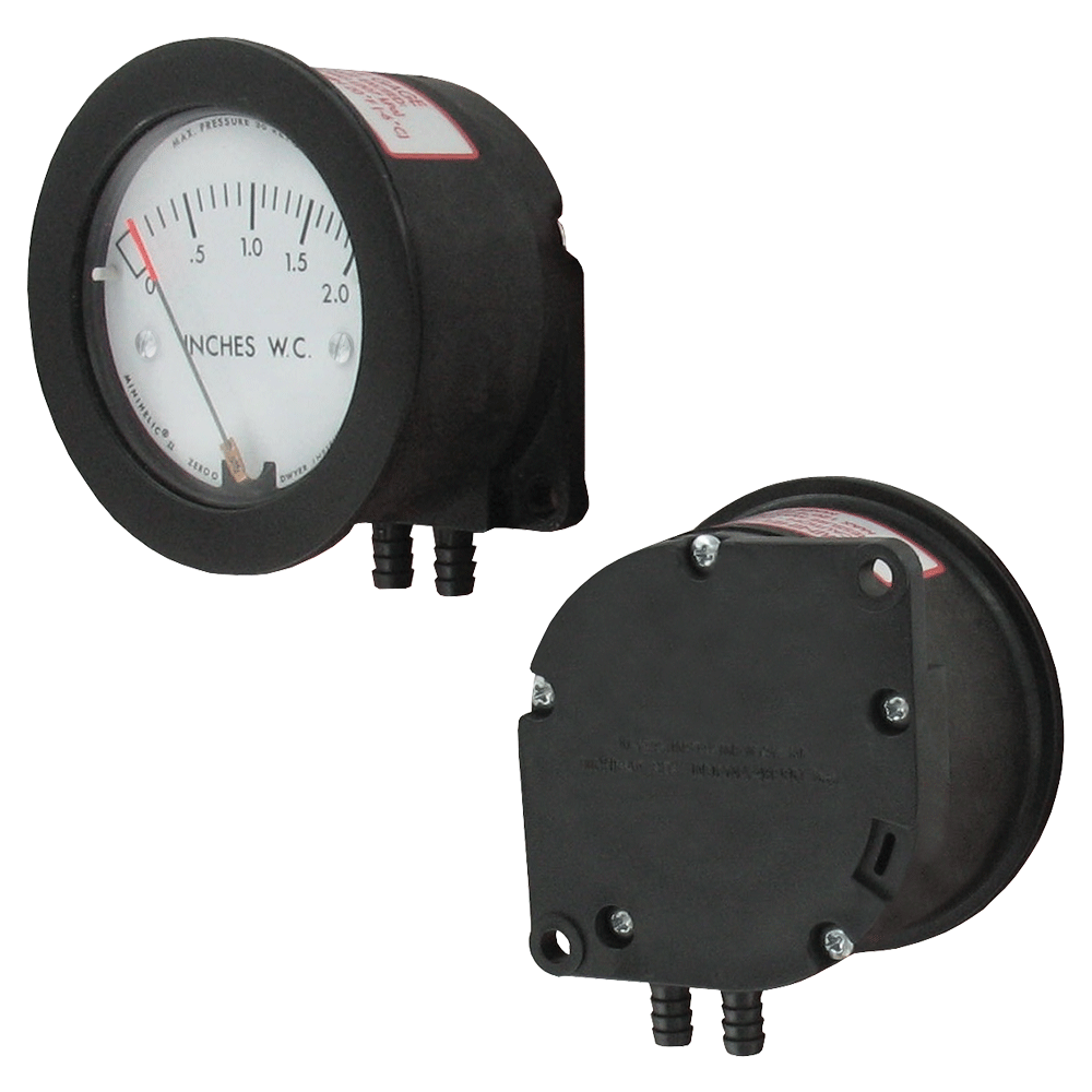 Combining clean design, small size and low cost with enough accuracy for all but the most demanding applications our Series 2-5000 Minihelic® II Differential Pressure Gage offers the latest in design features for a dial type differential pressure gage. It is our most compact gage but is easy to read and can safely operate at total pressures up to 30 psig.