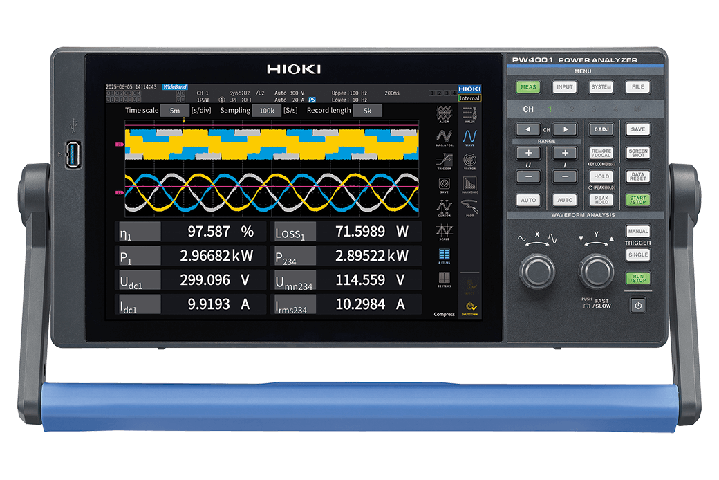 Precision and Portability Perfectly Combined — PW4001 คือเครื่องวิเคราะห์กำลังไฟฟ้าแบบ 4-แชนแนลที่รวมความแม่นยำระดับแล็บเข้ากับความคล่องตัวภาคสนาม ให้ความแม่นยำพื้นฐาน ±0.04% ตั้งแต่ DC จนถึง 600 kHz และสเปกความแม่นยำคงที่ตลอดย่านความถี่ ช่วยให้วัดพลังงานจากแบตเตอรี่ มอเตอร์ อินเวอร์เตอร์ และ DC-DC ได้อย่างเชื่อถือ ทั้งในห้องทดสอบ ห้องเย็น ภาคสนาม และสายการผลิต