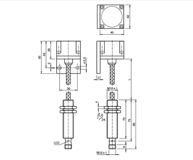 Proximity sensor หัวฝัง(์Flush),ระยะการตรวจจับ 25 มิลลิเมตร ใช้ไฟ 10 - 30VDC เข้าสายแบบ Connector Output PNP,NO/NC สามารถทนอุณภูมิได้สูงสุดที่หน้าตรวจจับ 250 องศาเซลเซียส , amplifier IP67 , sensor IP40