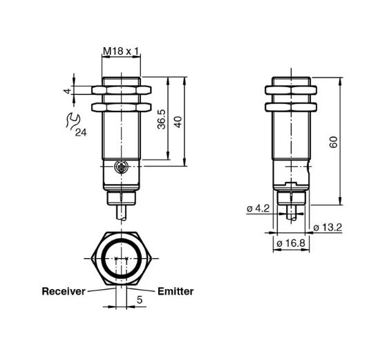 Diffuse mode sensor (สะท้อนวัตถุโดยตรง),ระยะการตรวจจับ 20 เซ็นติเมตร ใช้ไฟ10 - 30VDC 4 สาย Output PNP LO/DO สายยาว 2 เมตร