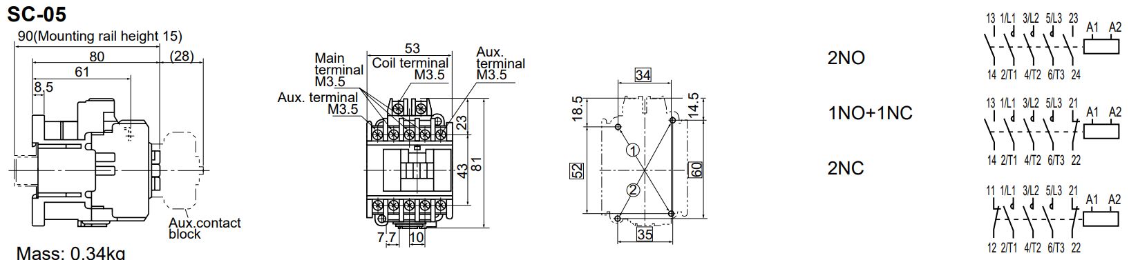 Max. Motor Capacity AC-3 IEC 60947-4-1 220-240V : 3.5kW